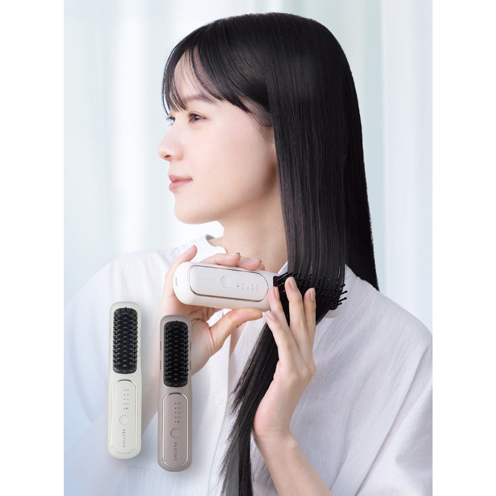 【ギフトカード】FESTINO(フェスティノ)充電式スタイリング ヒーターブラシ サンドベージュ