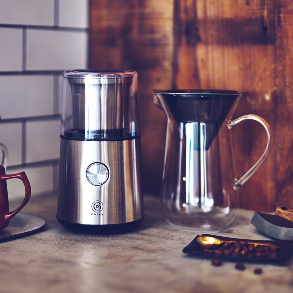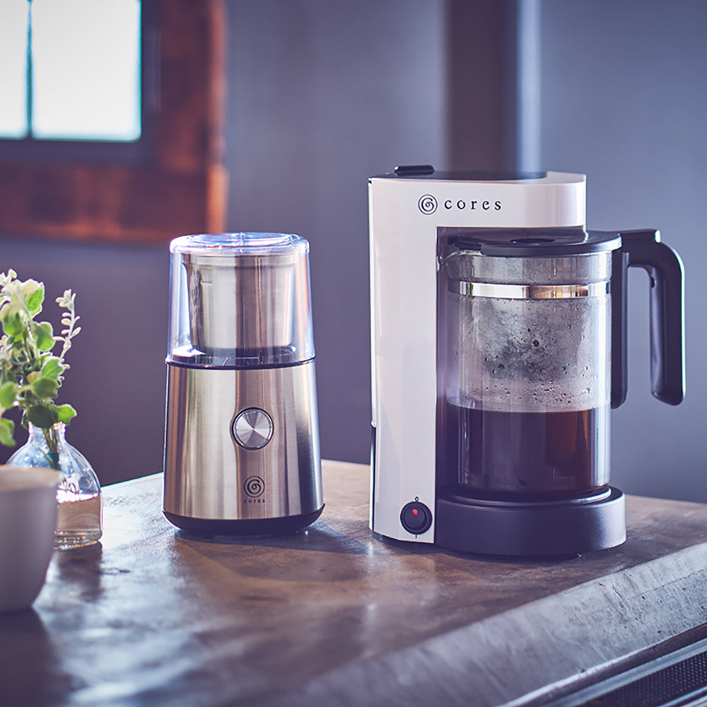 『自宅でもっと美味しいコーヒーを味わいたい』と、思い始めたなら、まず電動プロペラ式のコーヒーグラインダーをご用意することをお勧めします。豆からの挽きたてを使うだけで、ドリップコーヒーの美味しさは増します。Coresブレードコーヒーグラインダーなら、場所をとらず、構造が単純でお掃除しやすく、スイッチひとつのシンプル操作で、手軽にコーヒー豆を挽けるグラインダーです。豆の挽き始めからコーヒーフレーバーに包まれ、自宅でのコーヒータイムが更に豊かなひとときになります。