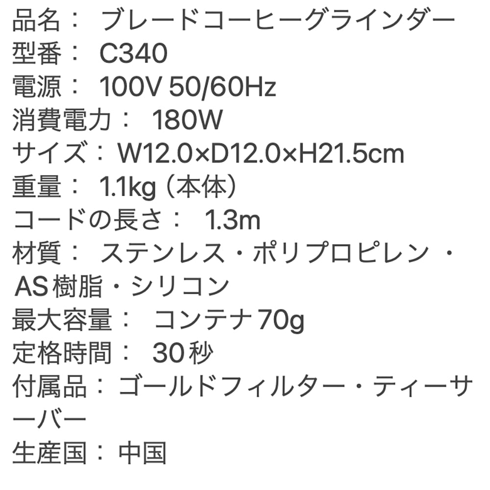 ■商品内容:Cores(コレス)ブレードコーヒーグラインダー