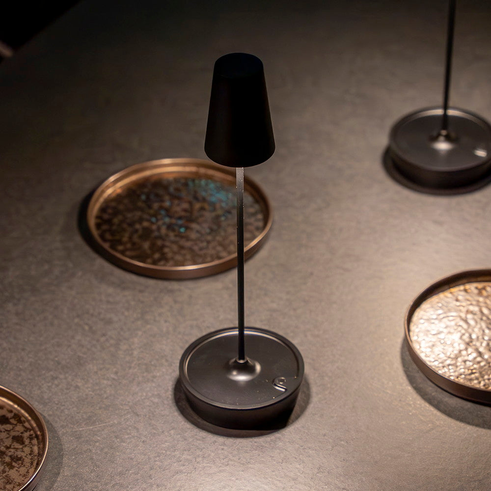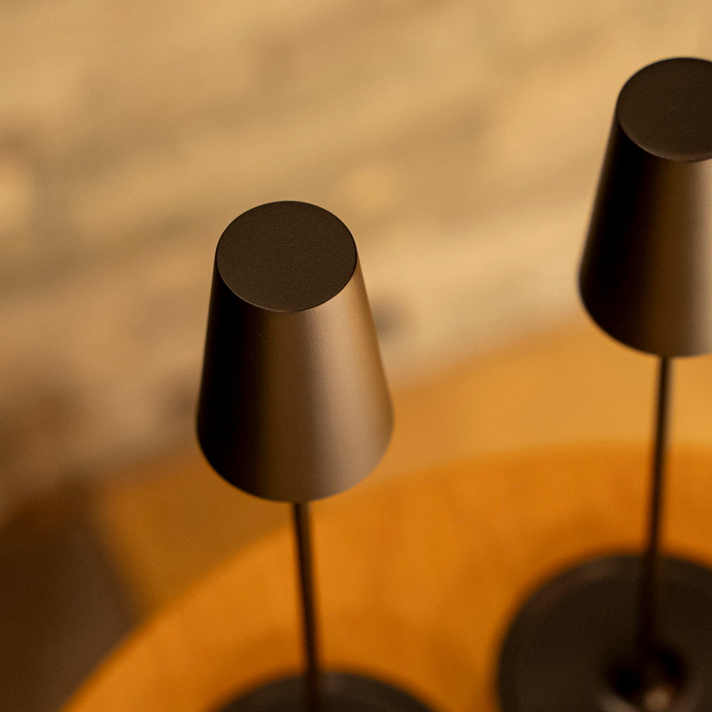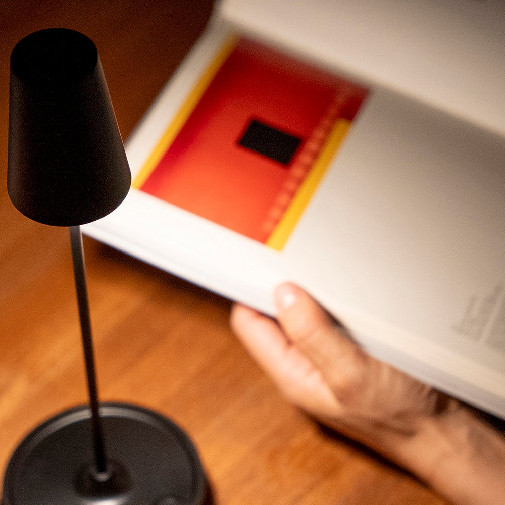 食卓テーブルなど、1灯で十分な灯りを得られる(最大200ルーメン)ワイヤレステーブルライト。光源を直視しないデザインは、演色性の高いLEDを使用し、テーブル面を心地よくライトアップ。タッチ電源ON-OFF, 3段階調光(60-120-200 ルーメン)。寝室灯や災害時にも活用の場を広げます。