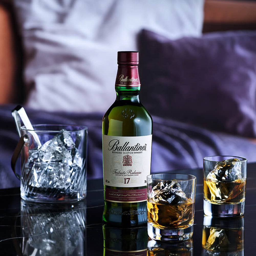 トリビュートリリースは、冷却濾過を行わないノンチルフィルタード製法を用いることで、原酒の持つ贅沢で豊かな味わいを引き出し、アルコール度数はリッチな48%を実現。通常熟成には2~3回使用したアメリカンオーク樽を中心に用いるバランタイン17年に対し、トリビュートリリースはファーストフィルと呼ばれる1度しか使用していないアメリカンオーク樽やヨーロピアンオーク樽も使用。多彩な原酒のハーモニーを重視するブレンドスタイルを継承したサンディー・ヒスロップの、新たなバランタイン17年としての熱い想いとこだわりが詰まっています。